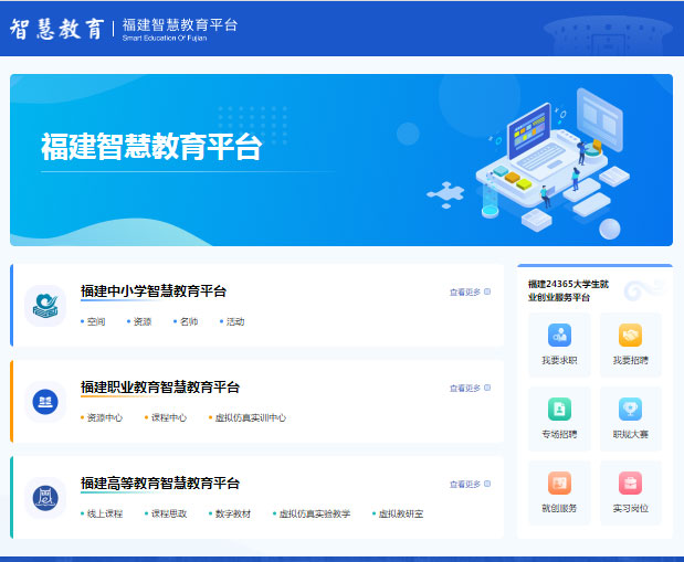 福建智慧教育平臺(tái)是福建省根據(jù)教育部總體部署,推進(jìn)國家智慧教育平臺(tái)體系建設(shè),實(shí)施國家教育數(shù)字化戰(zhàn)略行動(dòng)的一項(xiàng)重要舉措,匯聚福建省各學(xué)段優(yōu)質(zhì)數(shù)字教育資源和大學(xué)生就業(yè)創(chuàng)業(yè)服務(wù),為全省師生、家長和社會(huì)公眾提供一站式服務(wù)。