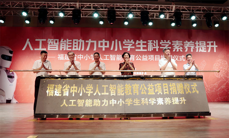為加快普及人工智能教育、助力福建省中小學教育信息化和現(xiàn)代化建設,7月27日,福建省中小學人工智能教育公益項目捐贈儀式在閩江高等師范專科學校附屬實驗小學舉行。省級老同志李紅,省教育廳、省教育發(fā)展基金會、相關學校領導和骨干教師、企業(yè)代表等70余人參加捐贈儀式。