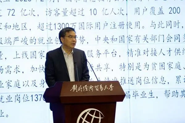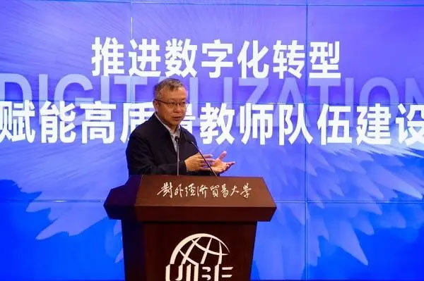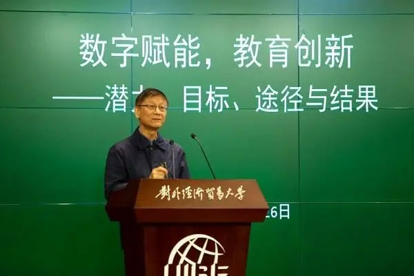 在主旨報(bào)告環(huán)節(jié),對(duì)外經(jīng)濟(jì)貿(mào)易大學(xué)黨委書(shū)記黃寶印表示,發(fā)展數(shù)字教育、推動(dòng)教育數(shù)字化轉(zhuǎn)型,是國(guó)家大勢(shì)所趨,發(fā)展所需,改革所向,教育工作者應(yīng)有之志,應(yīng)有之責(zé),應(yīng)立之功。教育數(shù)字化是新一輪科技革命和產(chǎn)業(yè)變革中推動(dòng)教育發(fā)展發(fā)展、賦能教育創(chuàng)新的重要力量和集中體現(xiàn)。