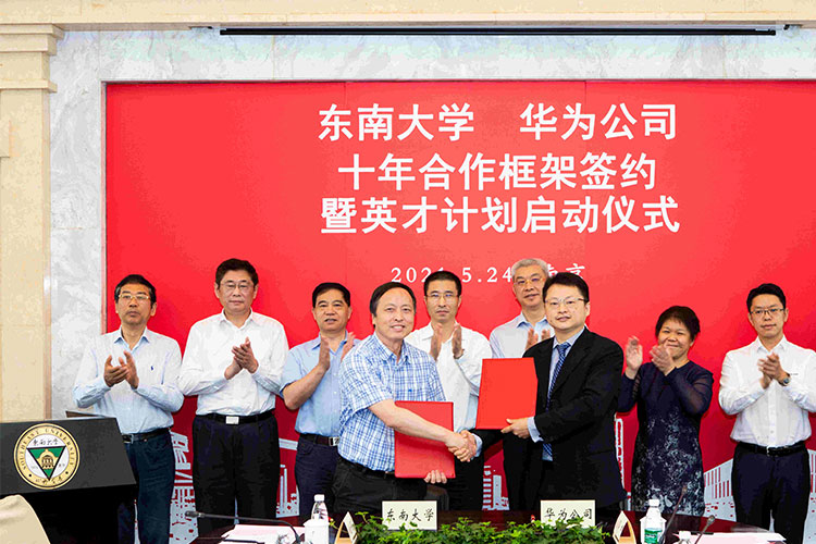 5月24日上午,東南大學(xué)-華為十年合作框架簽約暨英才計(jì)劃啟動(dòng)儀式在東南大學(xué)四牌樓校區(qū)舉行。這是繼2020年華為公司CEO任正非來(lái)訪東南大學(xué)之后,雙方在戰(zhàn)略層面進(jìn)行的重要合作。華為公司董事、戰(zhàn)略研究院院長(zhǎng)徐文偉,華為人力資源副總裁曾凡麗、華為全球技術(shù)合作副總裁艾超、上海海思總裁熊偉、華為南京研究所所長(zhǎng)郭坤、華為海思技術(shù)規(guī)劃部長(zhǎng)王志敏、華為2012無(wú)線技術(shù)實(shí)驗(yàn)室執(zhí)行主任盧建民;東南大學(xué)校長(zhǎng)、中國(guó)工程院院士張廣軍,中國(guó)科學(xué)院院士崔鐵軍,東南大學(xué)常務(wù)副校長(zhǎng)王保平,東南大學(xué)副校長(zhǎng)丁輝、黃大衛(wèi)、金保昇以及華為公司和東南大學(xué)相關(guān)部門(mén)、學(xué)院負(fù)責(zé)人出席儀式,簽約儀式由丁輝主持。