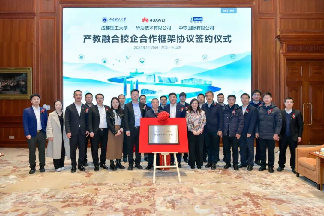 為深入貫徹落實(shí)國(guó)家創(chuàng)新驅(qū)動(dòng)發(fā)展戰(zhàn)略,推進(jìn)成都理工大學(xué)與國(guó)內(nèi)名企在產(chǎn)教融合、科教融匯、人才培養(yǎng)等方面的強(qiáng)強(qiáng)聯(lián)合、持續(xù)發(fā)展。近日,成都理工大學(xué)與華為技術(shù)有限公司、北京中軟國(guó)際信息技術(shù)有限公司產(chǎn)教融合校企合作協(xié)議簽約儀式于東莞松山湖舉行。