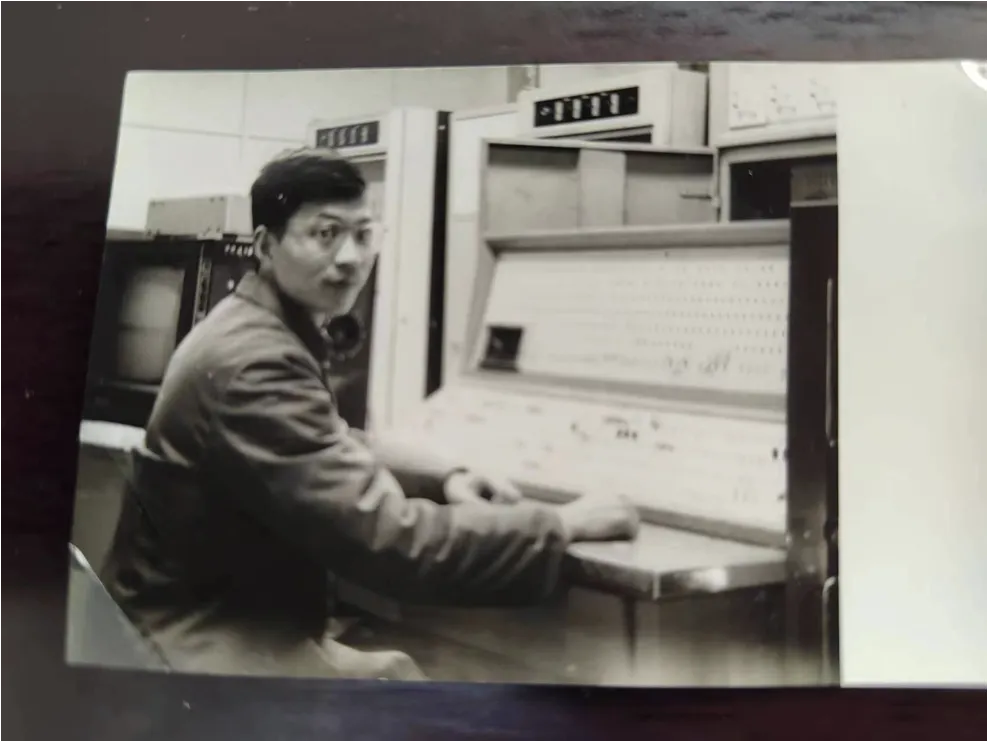 1975年,子彬院二樓,年輕的陳恕行坐在學(xué)校機房前,留下一張珍貴的照片。