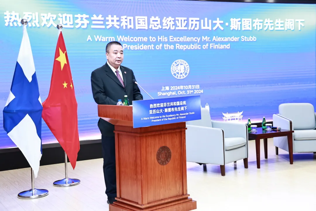 復旦大學校長、中國科學院院士金力在致辭中表示,復旦大學與芬蘭高校在教育和研究領域建立了廣泛而深入的合作關系,這些合作不僅提升了兩國在教育和科研領域的合作水平,也為深化雙方互信和理解奠定基礎。作為一所注重創(chuàng)新的綜合性研究型大學,復旦大學一直致力于國際合作和全球參與,堅持追求學術卓越、培養(yǎng)未來領袖。期待斯圖布總統(tǒng)的訪問能進一步加強復旦與芬蘭高校之間的學術交流與合作。