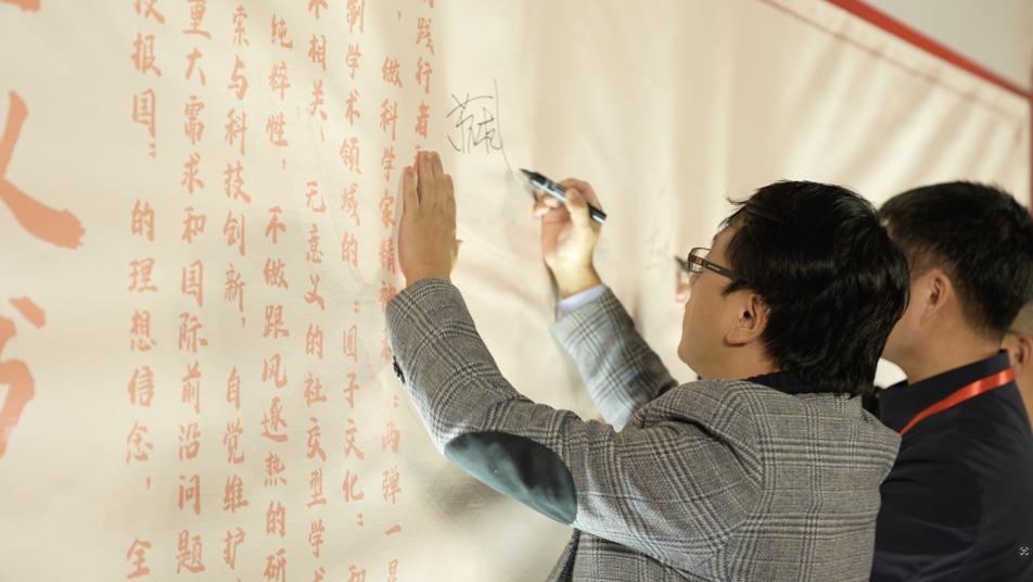 蘇杭等青年科學(xué)家代表在倡議書(shū)上簽名。戚金葆攝