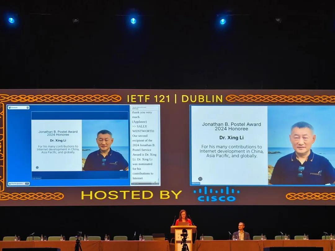 當(dāng)?shù)貢r(shí)間11月6日,在愛爾蘭都柏林舉行的第121屆 IETF大會上,國際互聯(lián)網(wǎng)協(xié)會將2024年度喬納森·波斯塔爾獎(Jonathan Postel Award)授予清華大學(xué)李星教授,以表彰他為全球互聯(lián)網(wǎng)技術(shù)發(fā)展作出的杰出貢獻(xiàn)。