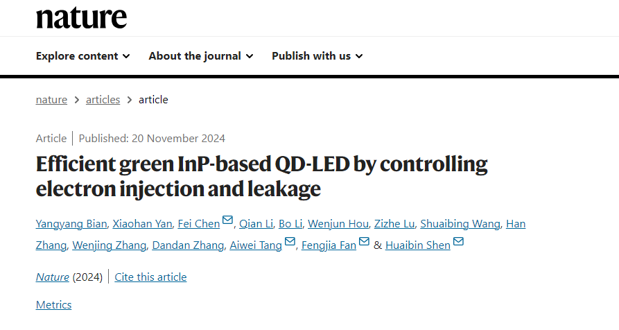 11月21日,河南大學(xué)申懷彬教授團(tuán)隊(duì)在量子點(diǎn)領(lǐng)域的研究成果以“Efficient green InP-based QD-LED by controlling electron injection and leakage”為題,在國際頂級期刊《自然》發(fā)表標(biāo)志著無毒量子點(diǎn)LED技術(shù)取得重要進(jìn)展,這是河南大學(xué)首次作為第一通訊單位在《自然》期刊發(fā)表研究成果。