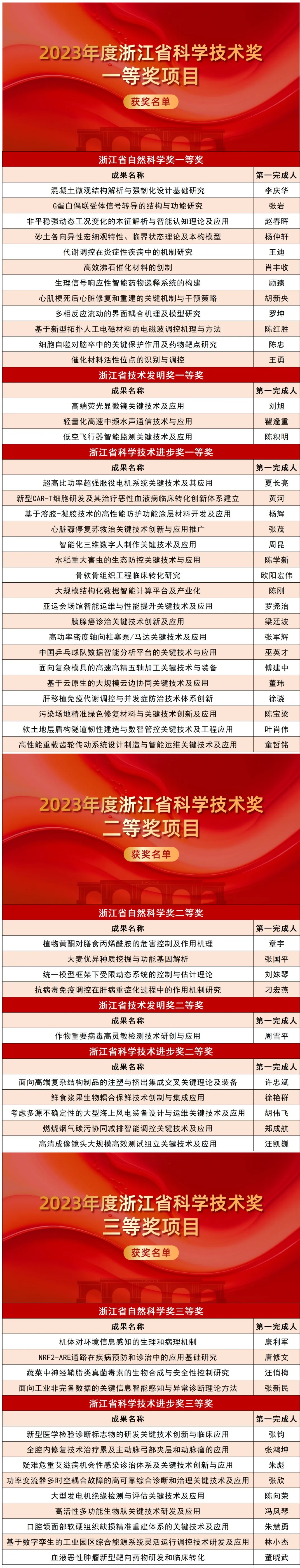 11月22日上午,加快建設創(chuàng)新浙江因地制宜發(fā)展新質(zhì)生產(chǎn)力動員部署會暨全省科學技術獎勵大會舉行,會上表彰了2023年度浙江省科學技術獎,浙江大學以第一完成單位獲一等獎33項,二等獎10項,三等獎13項,國際科學技術合作獎4項。