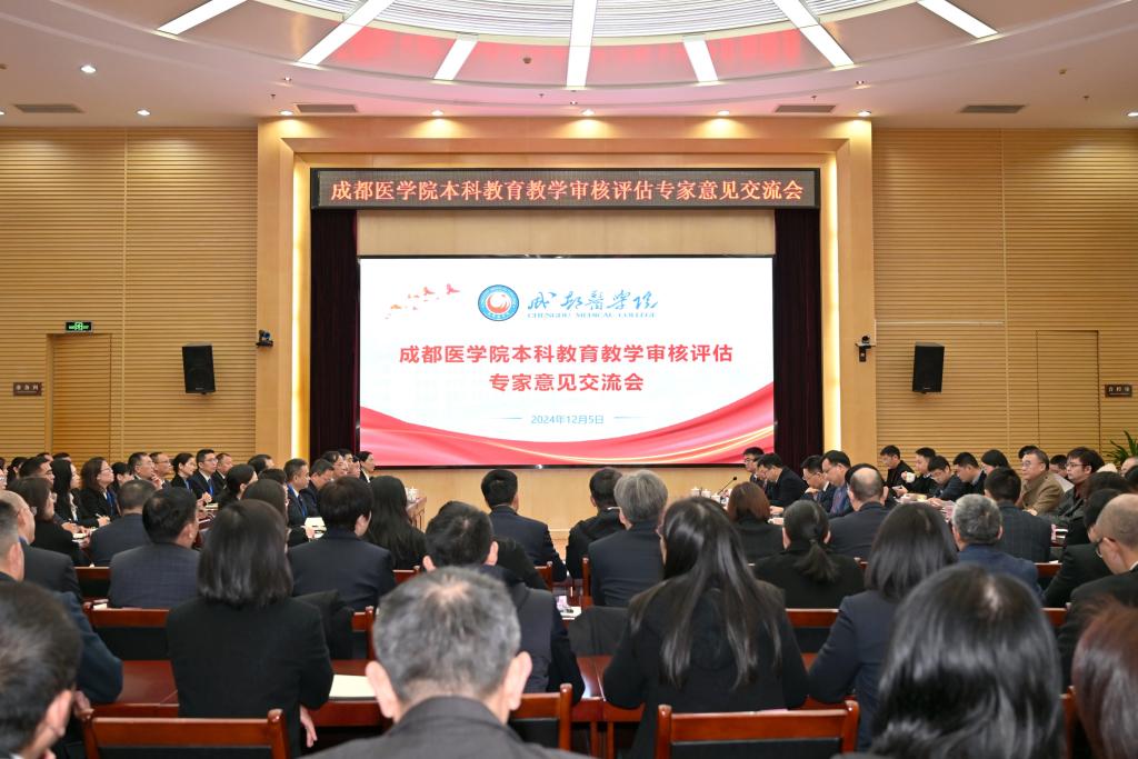 12月5日上午,本科教育教學(xué)審核評(píng)估專家組意見交流會(huì)在新都校區(qū)多功能廳召開。專家組組長、哈爾濱醫(yī)科大學(xué)校長季勇,專家組副組長、四川師范大學(xué)黨委副書記、校長趙國華,南京醫(yī)科大學(xué)黨委常委、副校長沈瑞林,天津中醫(yī)藥大學(xué)黨委常委、副校長王耀剛,暨南大學(xué)生物醫(yī)學(xué)工程技術(shù)研究所所長兼系主任薛巍,濟(jì)南大學(xué)教育與心理科學(xué)學(xué)院院長陳功香,川北醫(yī)學(xué)院臨床醫(yī)學(xué)院-附屬醫(yī)院黨委書記楊漢豐等專家組成員;省委教育工委委員、教育廳總督學(xué)傅明,教育廳督導(dǎo)與審計(jì)處、黨建與干部人才處等機(jī)關(guān)處室、評(píng)估院領(lǐng)導(dǎo);成都醫(yī)學(xué)院全體校常委,各學(xué)院、職能部門負(fù)責(zé)人,專業(yè)負(fù)責(zé)人參加會(huì)議。會(huì)議由趙國華主持。