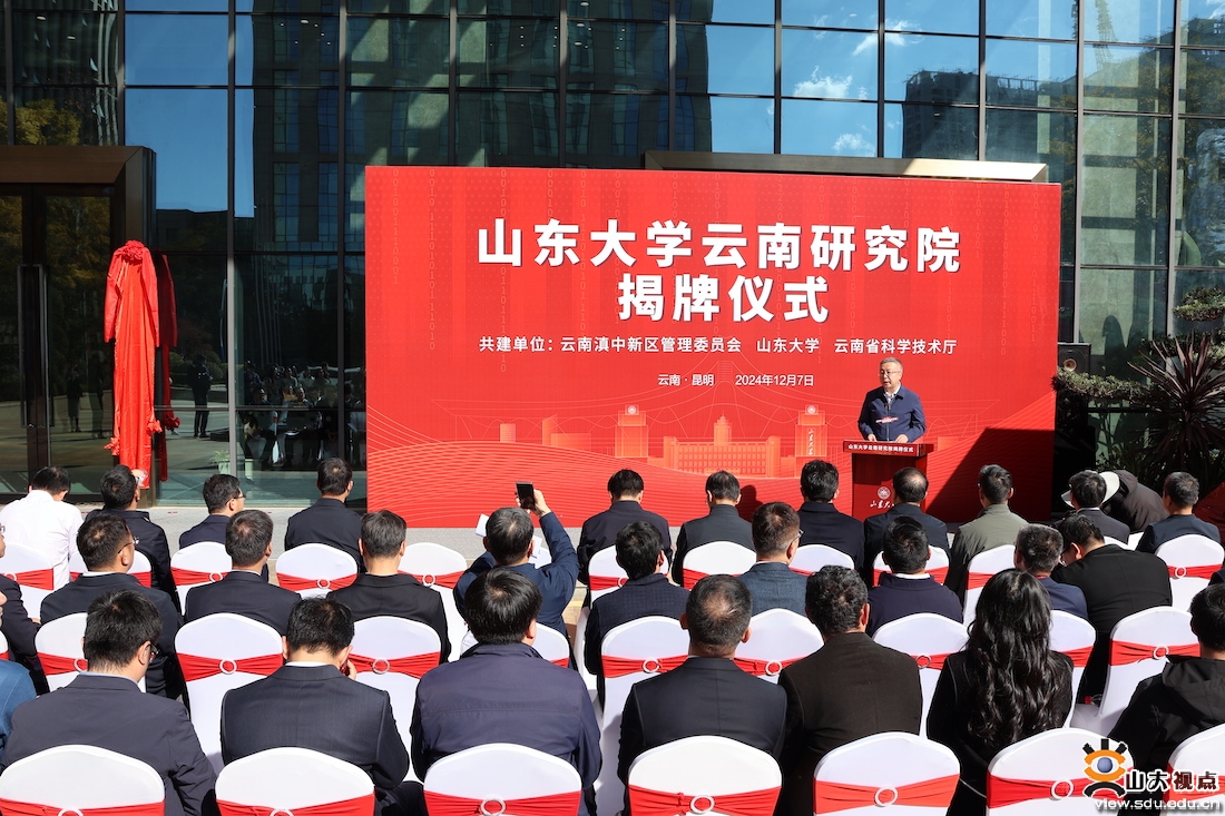 12月7日下午,山東大學(xué)云南研究院揭牌儀式在昆明市滇中新區(qū)舉行。校黨委書記任友群、校長李術(shù)才,昆明市委副書記、市長劉佳晨,云南滇中新區(qū)管委會黨工委副書記、管委會副主任楊東偉出席儀式。李術(shù)才主持儀式。
