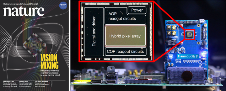 團(tuán)隊(duì)借鑒人類視覺機(jī)制,創(chuàng)新性地提出了基于原語(yǔ)表示的多通路互補(bǔ)類腦視覺感知新范式。在此基礎(chǔ)上,研發(fā)出全球首款基于原語(yǔ)的類腦互補(bǔ)視覺芯片“天眸芯”,在顯著降低帶寬(降低90%)和功耗下,實(shí)現(xiàn)了每秒10000幀、10bit、130dB的高速、高精度、高動(dòng)態(tài)范圍視覺感知,突破了傳統(tǒng)技術(shù)的局限,展現(xiàn)卓越的魯棒性和性能。團(tuán)隊(duì)圍繞“天眸芯”構(gòu)建了完善的軟件工具平臺(tái)、算法庫(kù)和數(shù)據(jù)庫(kù),在自動(dòng)駕駛開放場(chǎng)景下展示了優(yōu)異性能。成果作為封面發(fā)表在《自然》,榮獲世界互聯(lián)網(wǎng)大會(huì)全球領(lǐng)先科技成果獎(jiǎng)、Intel中國(guó)學(xué)術(shù)成就卓越研究獎(jiǎng)。