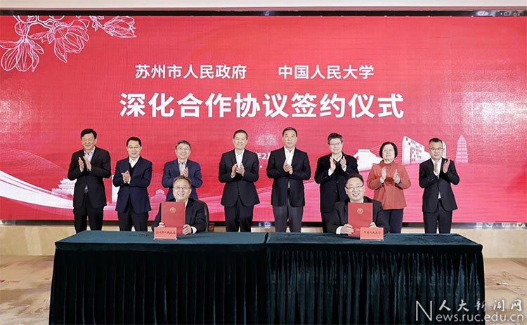 中國人民大學(xué)與蘇州合作基礎(chǔ)堅(jiān)實(shí)。自2003年首次簽署合作協(xié)議以來,雙方合作建設(shè)了國際學(xué)院(蘇州研究院)、中法學(xué)院、絲路學(xué)院,成立了中國人民大學(xué)蘇州校區(qū),成功舉辦了“人文經(jīng)濟(jì)蘇州論壇”等。