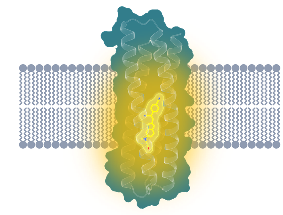前面提到的人類直接感受光信號的視紫紅質(zhì),就是因為具有能夠特異結(jié)合視黃醛分子的“泊位”,才能夠發(fā)揮感光的作用。這里“特異結(jié)合”的結(jié)構(gòu),被形象地稱為“結(jié)合口袋(binding pocket)”。不同膜蛋白的“結(jié)合口袋”能夠根據(jù)其獨特的結(jié)構(gòu),來識別、結(jié)合與之相匹配的特定配體,從而實現(xiàn)特定的功能。比如葡萄糖轉(zhuǎn)運蛋白轉(zhuǎn)運葡萄糖分子進入人體細胞,為細胞提供能量;或者NMDA受體被氯胺酮藥物分子抑制,對抑郁癥起到治療的作用。
