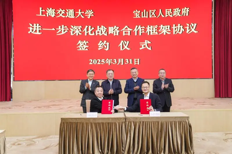 會上,雙方簽署《上海市寶山區(qū)人民政府 上海交通大學(xué)進(jìn)一步深化戰(zhàn)略合作框架協(xié)議》。雙方將進(jìn)一步深化戰(zhàn)略合作,圍繞黨建引領(lǐng)、深化產(chǎn)學(xué)研用融合、生物醫(yī)藥、醫(yī)療衛(wèi)生、基礎(chǔ)教育、城市設(shè)計與城市更新、文化旅游、農(nóng)業(yè)農(nóng)村、干部人才交流等方面開展合作,共同打造人才鏈、創(chuàng)新鏈、產(chǎn)業(yè)鏈、資金鏈深度融合的區(qū)校合作新范式,為寶山區(qū)建設(shè)上??苿?chuàng)中心主陣地和上海交大打造中國特色世界一流大學(xué)等目標(biāo)愿景提供強(qiáng)大動力支撐。