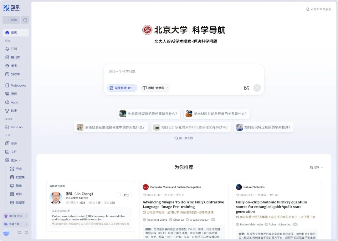 近日,由北京科學(xué)智能研究院與深勢科技聯(lián)合打造的新一代AI4S科研知識(shí)庫與AI學(xué)術(shù)搜索平臺(tái)——Science Navigator(科學(xué)導(dǎo)航)正式上線(訪問入口:校內(nèi)門戶或北京大學(xué)APP搜“AI4S”)。這是全球首個(gè)覆蓋“讀文獻(xiàn)-做計(jì)算-做實(shí)驗(yàn)-多學(xué)科協(xié)同”的AI科研平臺(tái),通過智能技術(shù)賦能科研創(chuàng)新,助力北大科研工作者高效探索學(xué)術(shù)前沿最新動(dòng)態(tài),讓科學(xué)家們擺脫繁瑣的信息搜索將更多精力投入真正的科研突破。