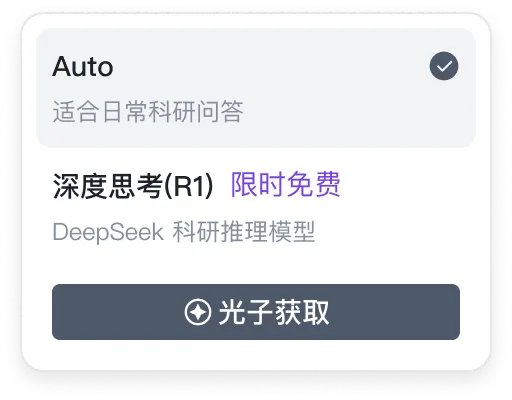 平臺(tái)內(nèi)置北大自研DeepSeek科研大模型、行業(yè)領(lǐng)先的GPT-4等多款A(yù)I模型,支持“Auto智能匹配”與“手動(dòng)選擇”雙模式?;瘜W(xué)研究者可選擇擅長分子模擬的模型解析反應(yīng)機(jī)理,物理學(xué)者可調(diào)用專注理論推導(dǎo)的模型驗(yàn)證假設(shè)。研究人員可依據(jù)查詢目標(biāo)靈活選擇最適合的AI模型,以獲得更精準(zhǔn)、更專業(yè)的回答。這種多模型架構(gòu)使平臺(tái)能夠兼顧不同類型科研任務(wù),充分發(fā)揮各模型所長,提升復(fù)雜學(xué)術(shù)問題的解答質(zhì)量。
