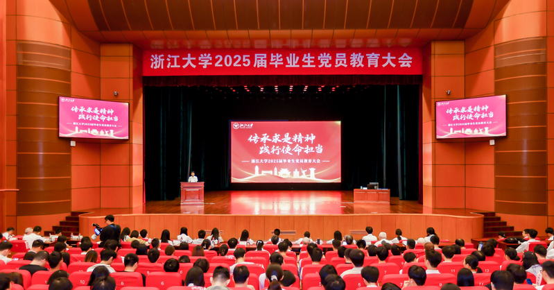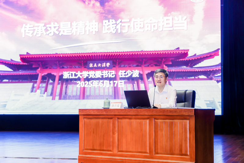 6月17日上午,浙江大學2025屆畢業(yè)生黨員教育大會在紫金港校區(qū)劇場舉行,任少波為赴重點單位就業(yè)畢業(yè)生代表授牌、為選調(diào)生代表出征授旗,并講授以“傳承求是精神 踐行使命擔當”為題的專題黨課,引導畢業(yè)生追逐遠大夢想,在新征程上行穩(wěn)致遠,擁抱幸福人生。