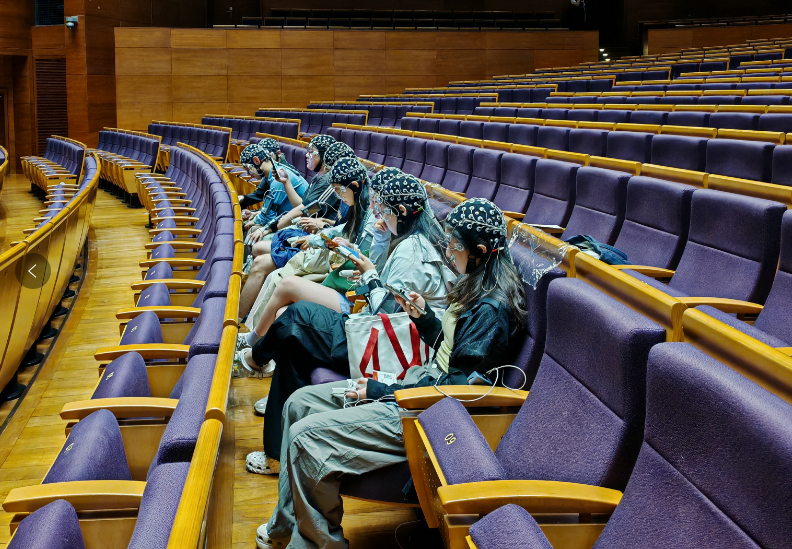 圖上,8位頭戴“神奇發(fā)帽”的人坐在新清華學(xué)堂舞劇演出《詠春》的觀眾席上,網(wǎng)友紛紛留言,有人以為是集體染發(fā)看演出的行為藝術(shù),有人說這像是被蕨類植物寄生,還有人擔(dān)心會不會對身體有影響……
