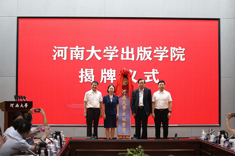 6月28日,河南大學(xué)出版學(xué)院揭牌儀式舉行。河南省委宣傳部、中國(guó)編輯學(xué)會(huì)、中國(guó)新聞史學(xué)會(huì)、河南大學(xué)等相關(guān)領(lǐng)導(dǎo)出席會(huì)議,來(lái)自武漢大學(xué)、南京大學(xué)、四川大學(xué)、上海交通大學(xué)、中國(guó)傳媒大學(xué)、南開(kāi)大學(xué)、華東師范大學(xué)等60余所高校的知名專(zhuān)家和青年學(xué)者共同見(jiàn)證。揭牌儀式由河南大學(xué)副校長(zhǎng)、出版學(xué)院院長(zhǎng)張禮剛主持。
