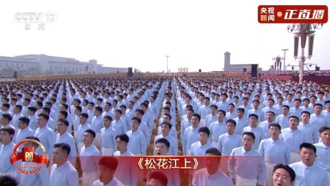 伴隨著軍樂團(tuán)的演奏,《松花江上》《在太行山上》《保衛(wèi)黃河》《沒有共產(chǎn)黨就沒有新中國(guó)》等經(jīng)典曲目被唱響,大家用豪邁的歌聲,追憶烽火歲月,唱出中華兒女的不屈和希望,致敬偉大的抗戰(zhàn)精神。