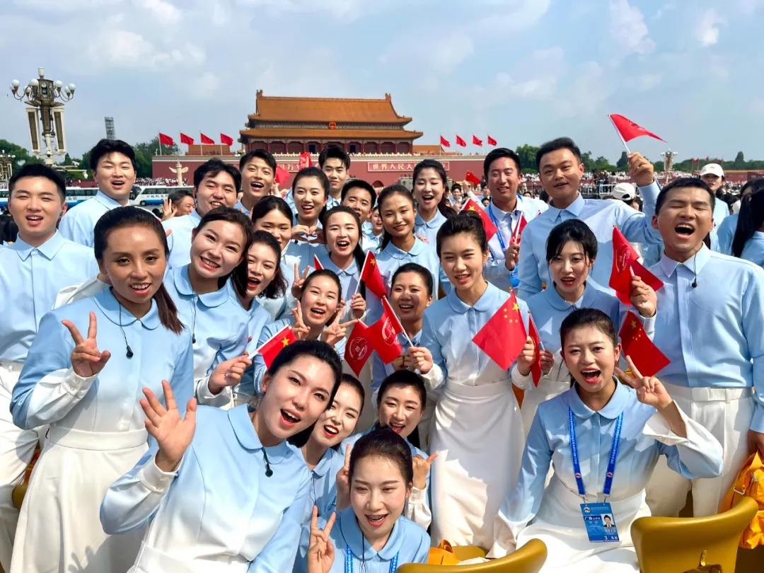 廣場(chǎng)合唱團(tuán)成員、國(guó)科大管理科學(xué)與工程專業(yè)碩士生吳虹奕:雖然已經(jīng)歷經(jīng)多次廣場(chǎng)演練,但是當(dāng)合唱團(tuán)倒數(shù)一秒秒逼近,我的緊張和期盼不減分毫;望著日出東方準(zhǔn)備唱出“我們?cè)谔猩缴稀保髁恋男叛鲆廊蛔茻p眼;飛行梯隊(duì)從身后天空中劃過(guò)遮擋陽(yáng)光的一瞬間,我仍然感到了強(qiáng)盛軍力帶來(lái)的絕對(duì)安全感,以及無(wú)限的幸福和自豪。無(wú)比幸運(yùn),我們生逢盛世;繼往開來(lái),我們重任在肩!