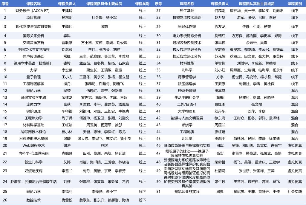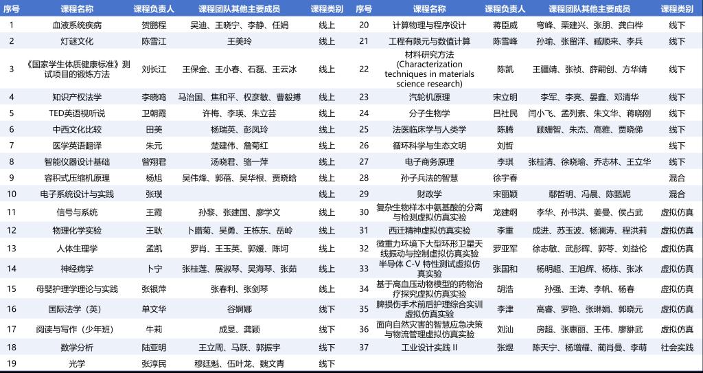 近日,教育部公布了第三批國(guó)家級(jí)一流本科課程認(rèn)定結(jié)果名單,西安交通大學(xué)共有37門課程入選,包括線上課程15門、線下課程12門、線上線下混合式課程2門、虛擬仿真課程7門、社會(huì)實(shí)踐課程1門。