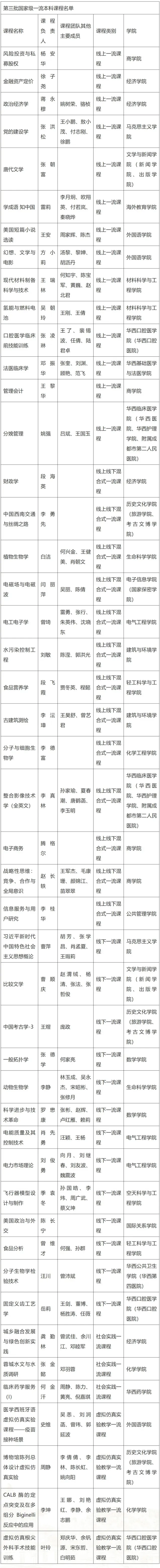 第三批國家級一流課程名單詳見下表: