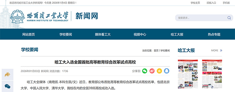 近日,哈爾濱工程大學(xué)成功入選全國首批39所高等教育綜合改革試點高校。