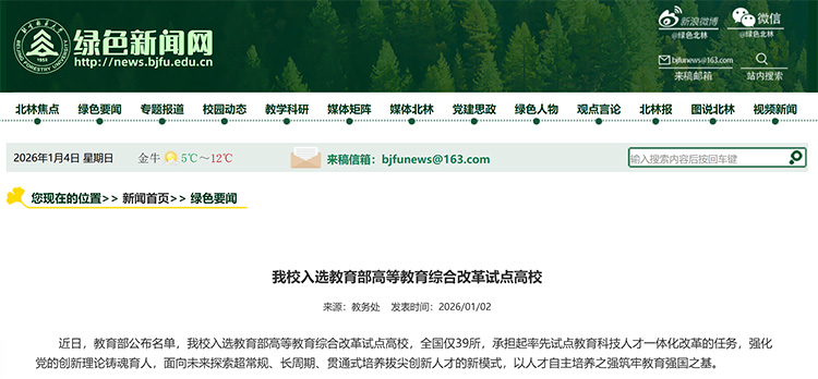 近日,教育部公布名單,北京林業(yè)大學(xué)入選教育部高等教育綜合改革試點高校,全國僅39所,承擔(dān)起率先試點教育科技人才一體化改革的任務(wù),強(qiáng)化黨的創(chuàng)新理論鑄魂育人,面向未來探索超常規(guī)、長周期、貫通式培養(yǎng)拔尖創(chuàng)新人才的新模式,以人才自主培養(yǎng)之強(qiáng)筑牢教育強(qiáng)國之基。