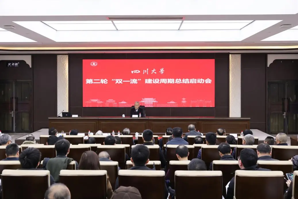 1月22日,四川大學(xué)第二輪“雙一流”建設(shè)周期總結(jié)啟動會在望江校區(qū)明德樓舉行。校長汪勁松等全體在校校領(lǐng)導(dǎo),院士、杰出教授代表,一流學(xué)科(群)和超前部署學(xué)科首席科學(xué)家,各學(xué)院(系)主要負(fù)責(zé)人以及分管學(xué)科負(fù)責(zé)人,相關(guān)機關(guān)部處負(fù)責(zé)人參加會議。常務(wù)副校長褚良銀主持會議。