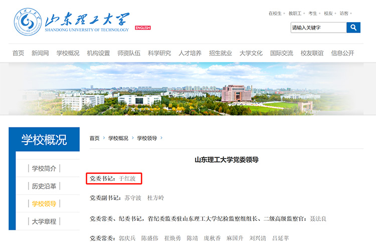 近日,山東理工大學(xué)網(wǎng)站更新學(xué)校領(lǐng)導(dǎo)信息,于紅波已任山東理工大學(xué)黨委書記。