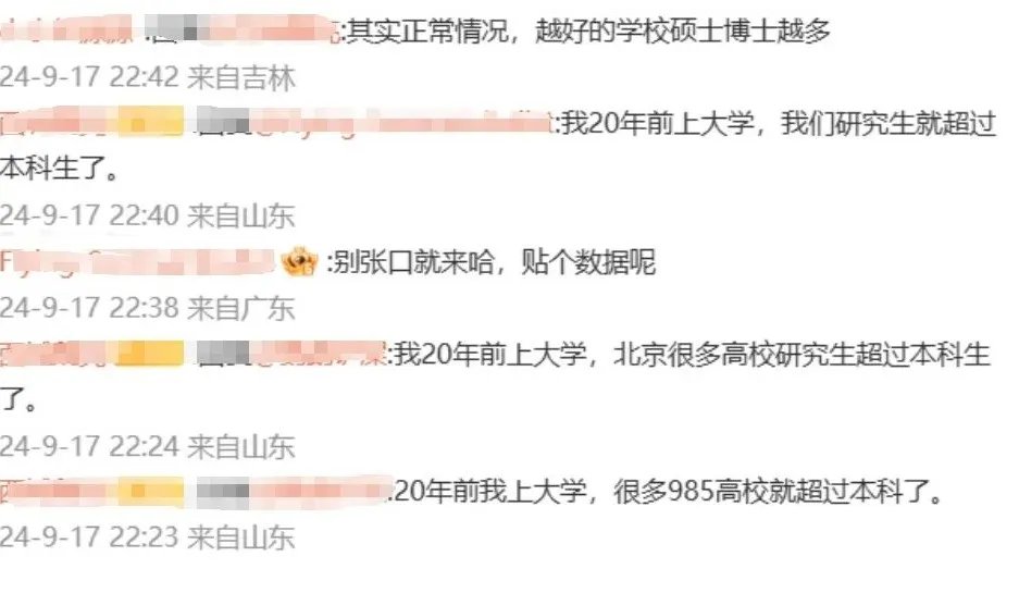 更多人則表示,研究生規(guī)模超過(guò)本科生,根本不是什么稀奇的事,尤其是在985等著名高校。