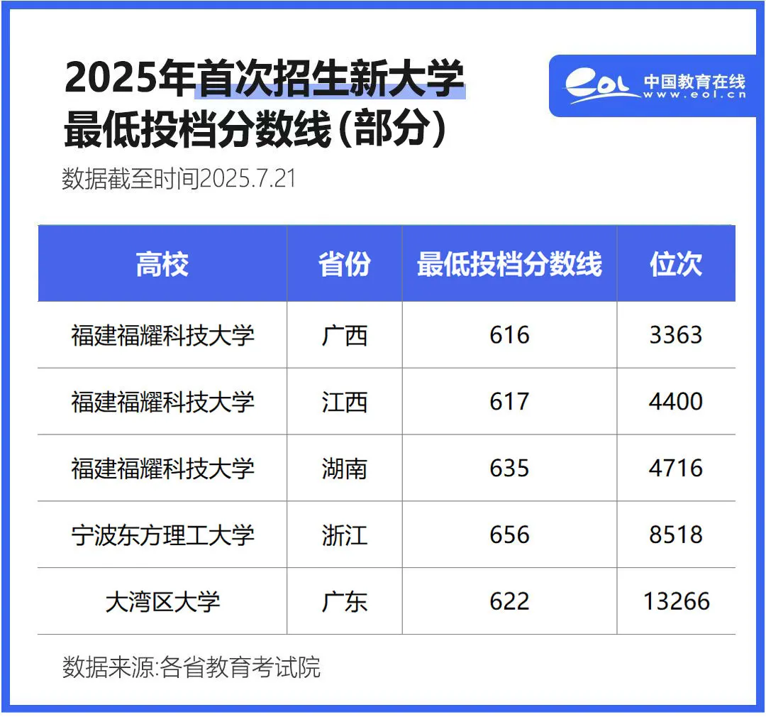 其中,福建福耀科技大學、寧波東方理工大學、大灣區(qū)大學這3所今年首次招生的新大學,憑借比肩甚至超越多所985高校的超高投檔線,引發(fā)了廣泛關注與熱議。