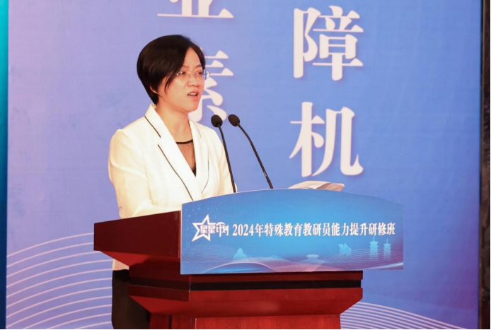 教育部基礎(chǔ)教育司副司長李海勝指出,此次特殊教育教研員能力提升研修班,是近年來首次舉辦的國家級特殊教育教研員隊(duì)伍專項(xiàng)培訓(xùn),這既是貫徹落實(shí)黨的二十大關(guān)于“強(qiáng)化特殊教育普惠發(fā)展”的實(shí)際行動,也是落實(shí)黨的二十屆三中全會“健全特殊教育保障機(jī)制”的具體體現(xiàn),對建設(shè)教育強(qiáng)國,提升民生保障力,構(gòu)建公平優(yōu)質(zhì)基礎(chǔ)教育體系具有重要意義。辦好特殊教育,是黨和政府堅(jiān)持以人民為中心、弘揚(yáng)人道主義精神和保障基本人權(quán)的重要舉措,是推進(jìn)教育高質(zhì)量發(fā)展、加快建設(shè)教育強(qiáng)國的應(yīng)有之義,也是推進(jìn)中國式現(xiàn)代化、實(shí)現(xiàn)共同富裕的內(nèi)在要求。他強(qiáng)調(diào),加強(qiáng)特殊教育教研工作,是提升特殊教育質(zhì)量的關(guān)鍵所在。各級教育部門要高度重視特殊教育教研工作,健全教研體制機(jī)制,加強(qiáng)教研隊(duì)伍建設(shè),提升教學(xué)研究水平和教學(xué)指導(dǎo)能力,為特殊教育高質(zhì)量發(fā)展提供有力支撐。