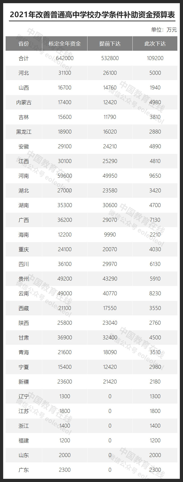 近日,財政部、教育部聯(lián)合印發(fā)《關(guān)于下達2021年改善普通高中學(xué)校辦學(xué)條件補助資金預(yù)算的通知》(以下簡稱《通知》),本次向各省(自治區(qū)、直轄市)下達改善普通高中學(xué)校辦學(xué)條件補助資金預(yù)算合計10.92億元,此前已提前下達53.28億元,共計64.2億元。
