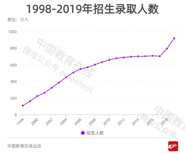 1998年,我國大學(xué)生在校人數(shù)780萬,遠(yuǎn)低于同等發(fā)展水平的國家,高等教育毛入學(xué)率僅為9.8%,遠(yuǎn)遠(yuǎn)不能滿足人民群眾接受高等教育的需求和國家經(jīng)濟(jì)社會(huì)發(fā)展對(duì)人才的需求。高校擴(kuò)招是民心所向,勢在必行。