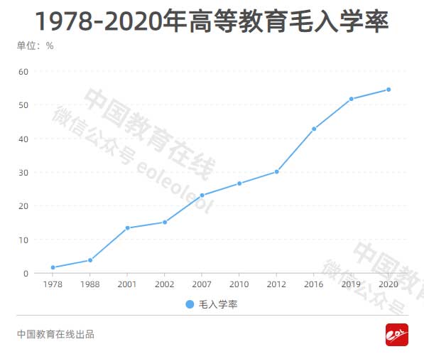 2020年,全國高等教育毛入學(xué)率達(dá)到54.4%,高等教育持續(xù)向普及化快速邁進(jìn)。
