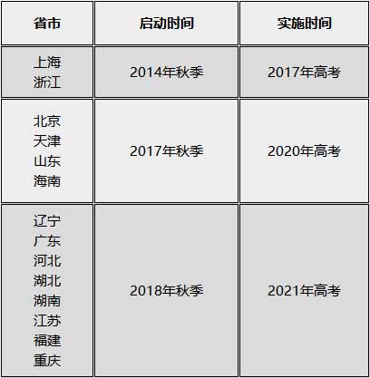 2014年,上海、浙江率先實(shí)行了新高考;2017年,北京、天津、山東、海南4個(gè)省份也啟動(dòng)了高考改革;2021年,河北、遼寧、江蘇、福建、湖北、湖南、廣東、重慶8個(gè)省市第三批啟動(dòng)高考綜合改革,解決高考公平,全面建立科學(xué)選才體系,實(shí)行多元評(píng)價(jià)。14個(gè)省市完全進(jìn)入新高考周期,高考改革進(jìn)入規(guī)模化種大田階段。