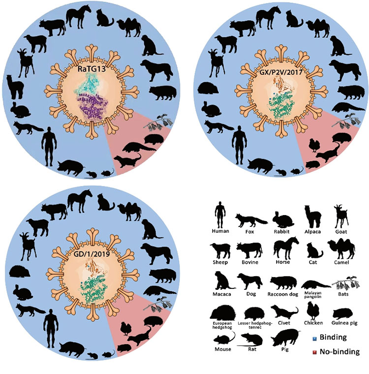 中國科學院微生物研究所高福院士團隊建立了高效評估冠狀病毒跨種識別能力的方法,利用這些方法對蝙蝠源性冠狀病毒 RaTG13和穿山甲源性冠狀病毒 GD/1/2019 和 GX/P2V/2017 的跨種傳播潛在風險進行評估,并闡明其跨種識別的分子機制,研究發(fā)現(xiàn)上述三種冠狀病毒存在跨種傳播的潛在風險,提示我們要持續(xù)對動物源性冠狀病毒進行監(jiān)測,預防新的冠狀病毒引發(fā)疫情,同時為理解病毒進化提供分子基礎。