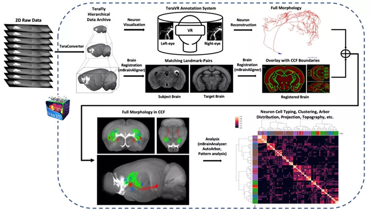 全腦范圍完整神經(jīng)元形態(tài)成像、重建、配準、分析平臺和流程