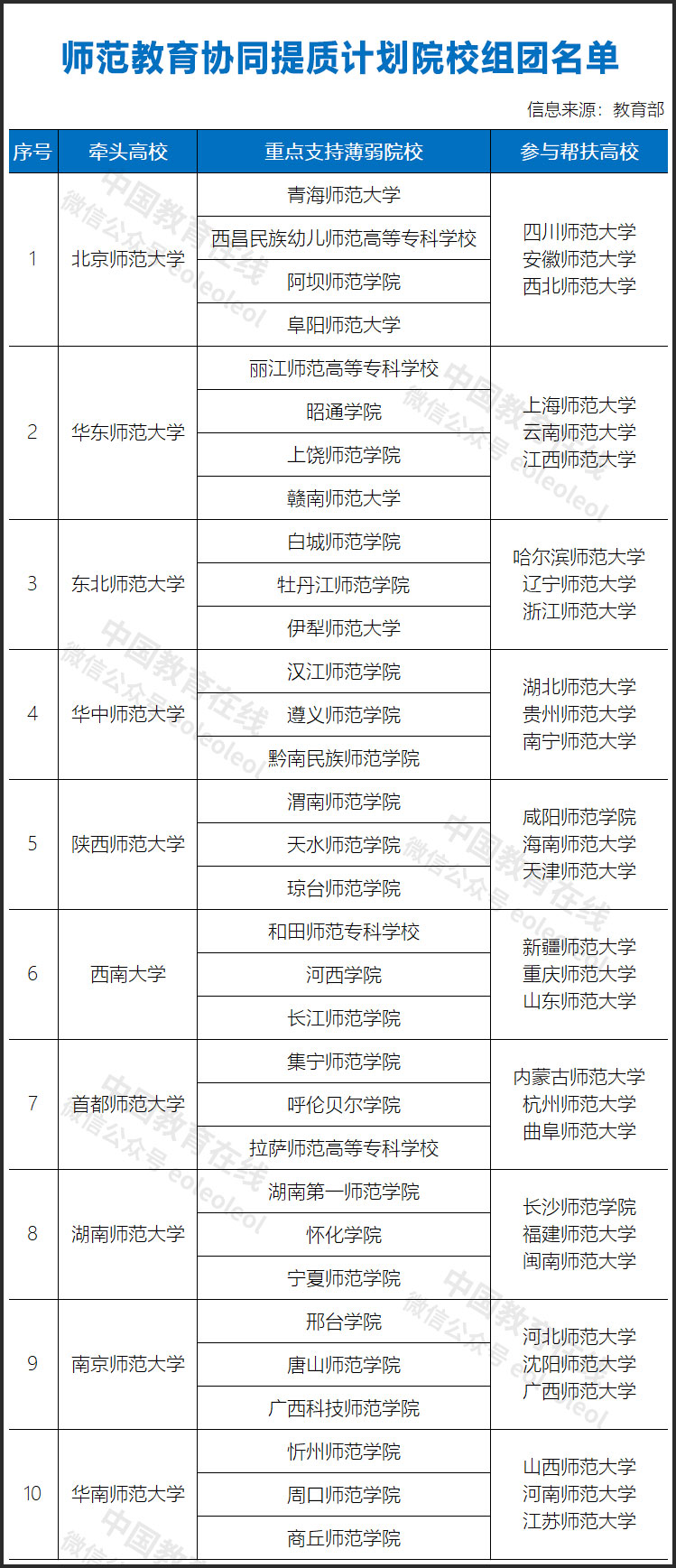 師范教育協(xié)同提質(zhì)計(jì)劃院校組團(tuán)名單如下: