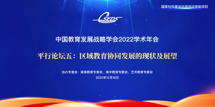 為深入學(xué)習(xí)、貫徹、宣傳黨的二十大精神,深入貫徹習(xí)近平新時(shí)代中國(guó)特色社會(huì)主義思想與習(xí)近平總書(shū)記關(guān)于教育的重要論述,探討新時(shí)代新格局背景下區(qū)域教育協(xié)同發(fā)展要求,2022年12月18日,中國(guó)教育發(fā)展戰(zhàn)略學(xué)會(huì)2022學(xué)術(shù)年會(huì)主題為“區(qū)域教育協(xié)同發(fā)展的現(xiàn)狀及展望”的平行論壇在“云端”隆重舉行。本次論壇由中國(guó)教育發(fā)展戰(zhàn)略學(xué)會(huì)主辦,中國(guó)教育發(fā)展戰(zhàn)略學(xué)會(huì)高等教育專業(yè)委員會(huì)承辦,中國(guó)教育發(fā)展戰(zhàn)略學(xué)會(huì)高中教育專業(yè)委員會(huì)、藝術(shù)教育專業(yè)委員會(huì)協(xié)辦。在疫情防控新形勢(shì)下,本次會(huì)議采取線上報(bào)告形式舉行,包括來(lái)自中國(guó)教育發(fā)展戰(zhàn)略學(xué)會(huì)、高等院校和科研院所的有關(guān)領(lǐng)導(dǎo)、科研工作者在內(nèi)的近200余人參會(huì)。