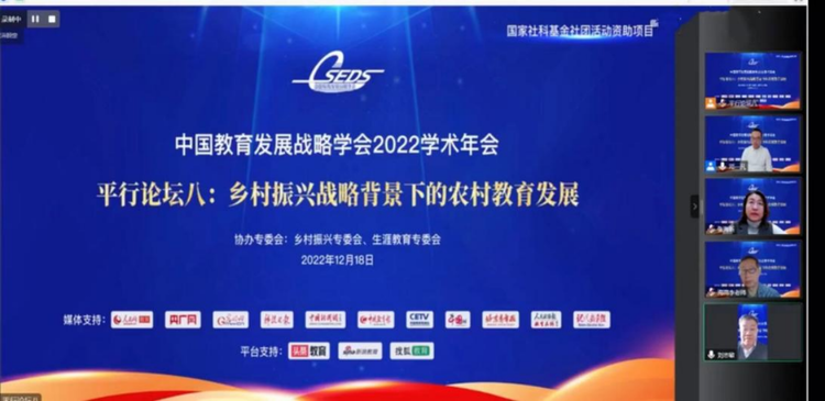 中國教育發(fā)展戰(zhàn)略學會2022年學術年會——鄉(xiāng)村振興戰(zhàn)略背景下的農(nóng)村教育發(fā)展分論壇于12月18日在線上開幕。本次會議以“學習貫徹二十大精神,深入探討鄉(xiāng)村振興背景下的農(nóng)村教育發(fā)展”為主題。聚焦多產(chǎn)業(yè)合作,打開思路,開拓新的教育模式,建立多點共建的發(fā)展戰(zhàn)略,推動鄉(xiāng)村教育的進一步深入。