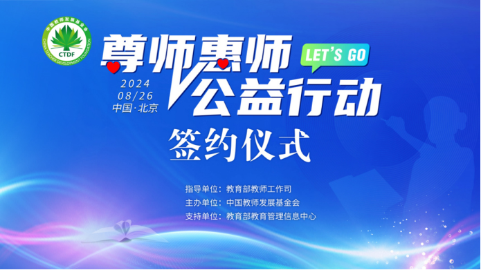 在第40個教師節(jié)前夕,為深入貫徹落實黨的二十大和二十屆三中全會精神,貫徹落實習(xí)近平總書記關(guān)于教育的重要論述,通過公益模式為教師做好事、辦實事,在教育部等七部委統(tǒng)籌協(xié)調(diào)下,在教育部教師工作司的指導(dǎo)、教育部教育管理信息中心的支持和愛心企業(yè)的積極參與下,8月26日,中國教師發(fā)展基金會在京啟動“尊師惠師公益行動”。