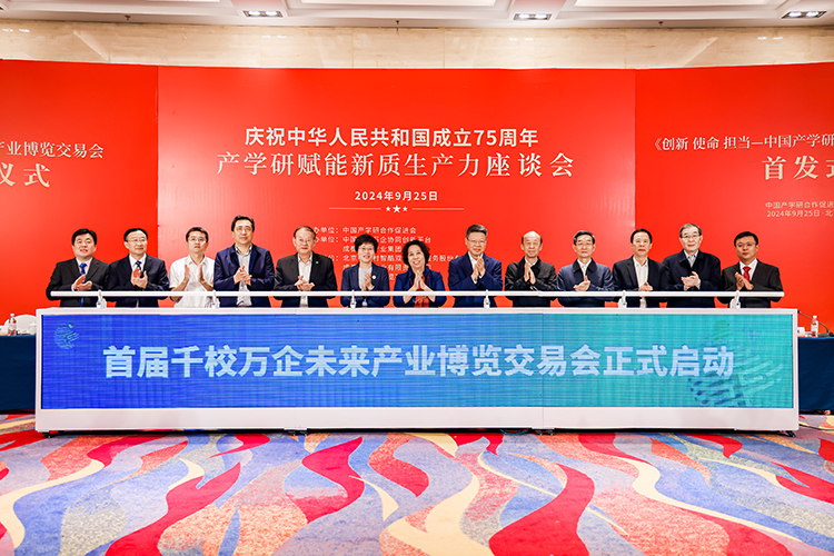2024年9月25日,由中國產(chǎn)學研合作促進會主辦的“迎國慶·話發(fā)展”產(chǎn)學研賦能新質(zhì)生產(chǎn)力座談會在北京舉行,來自教育部、國家知識產(chǎn)權(quán)局等部委領(lǐng)導,兩院院士,政產(chǎn)學研金服用相關(guān)單位以及媒體機構(gòu)代表出席。記者從會上獲悉,首屆千校萬企未來產(chǎn)業(yè)博覽交易會將于2024年12月11日至13日在四川成都舉辦,將是全國首個聚焦未來產(chǎn)業(yè)的產(chǎn)學研博覽交易會。