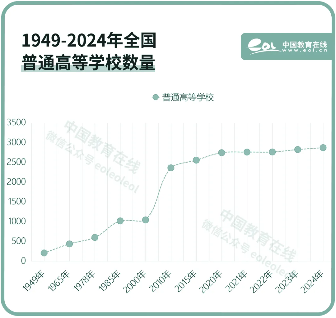 2024年,我國普通高等學校數(shù)量達到2868所,比1949年增長14倍。