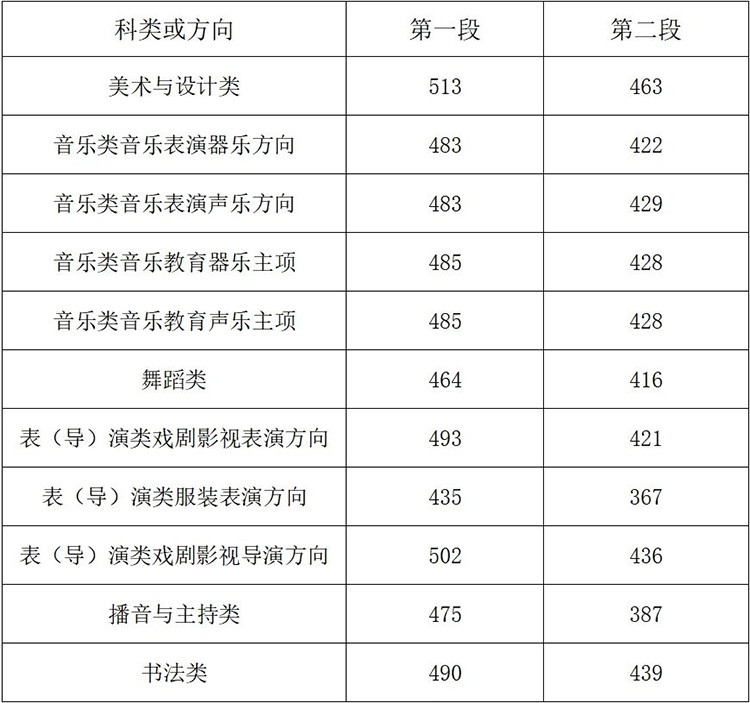 藝術(shù)類統(tǒng)考批各科類或方向綜合分分段線