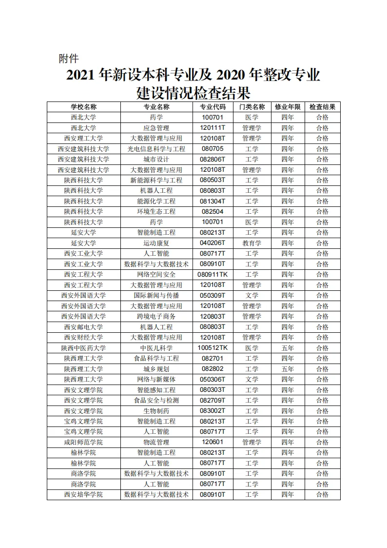 8月5日,陜西省教育廳發(fā)布《關于2021年新設本科專業(yè)及2020年整改專業(yè)建設情況檢查結(jié)果的公示》。