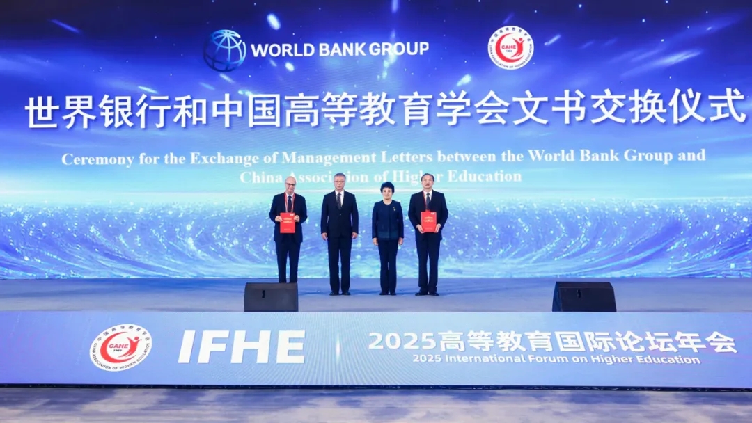 開幕式上,任友群、林蕙青見證學(xué)會(huì)與世界銀行交換文書。