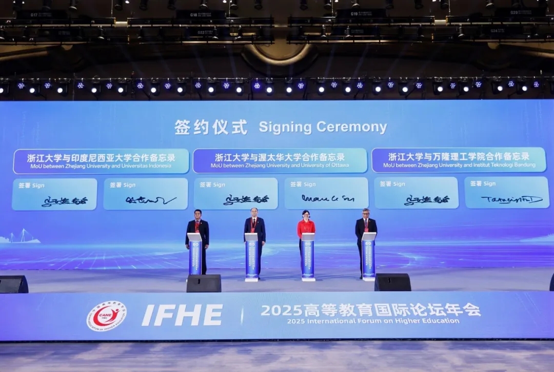50余所中外高校在會(huì)上達(dá)成合作意向,浙江大學(xué)作為高校代表,與渥太華大學(xué)、印度尼西亞大學(xué)、萬隆理工學(xué)院等高校簽署合作備忘錄。