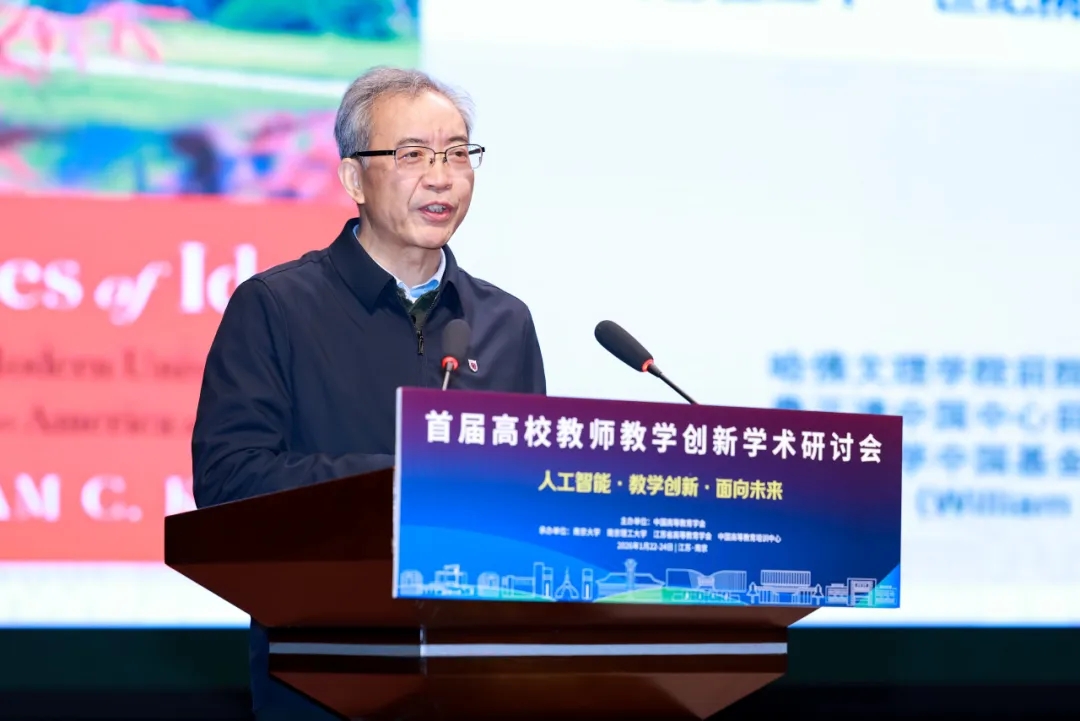 1月23日,中國高等教育學會聯(lián)合南京大學、南京理工大學、江蘇省高等教育學會,以及中國高等教育培訓中心共同舉辦的首屆高校教師教學創(chuàng)新學術研討會在南京開幕。研討會主題為“人工智能·教學創(chuàng)新·面向未來”。教育部高等教育司副司長武世興,教育部教育質量評估中心主任徐維清,學會副會長、秘書長李楠,中國科學院院士、南京大學校長談哲敏,江蘇省教育廳二級巡視員張鯉鯉,武漢理工大學原校長楊宗凱,浙江大學副校長夏群科,天津大學副校長李斌,復旦大學原副校長徐雷,南京理工大學副校長李強出席研討會。會議由江蘇省高等教育學會會長丁曉昌、南京大學副校長陸現(xiàn)彩主持。